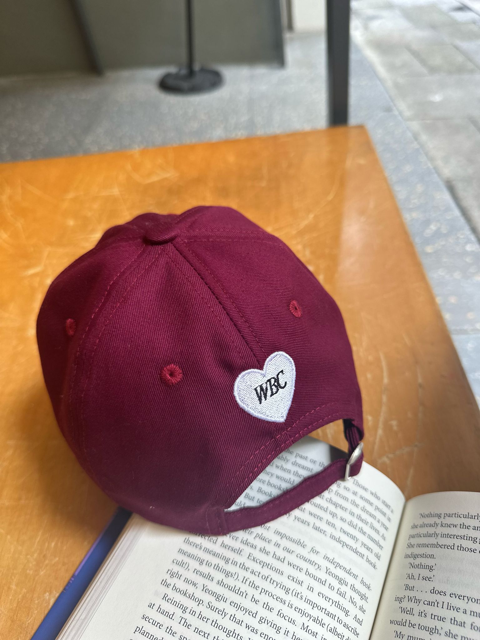 Embroidered cotton cap in burgundy
